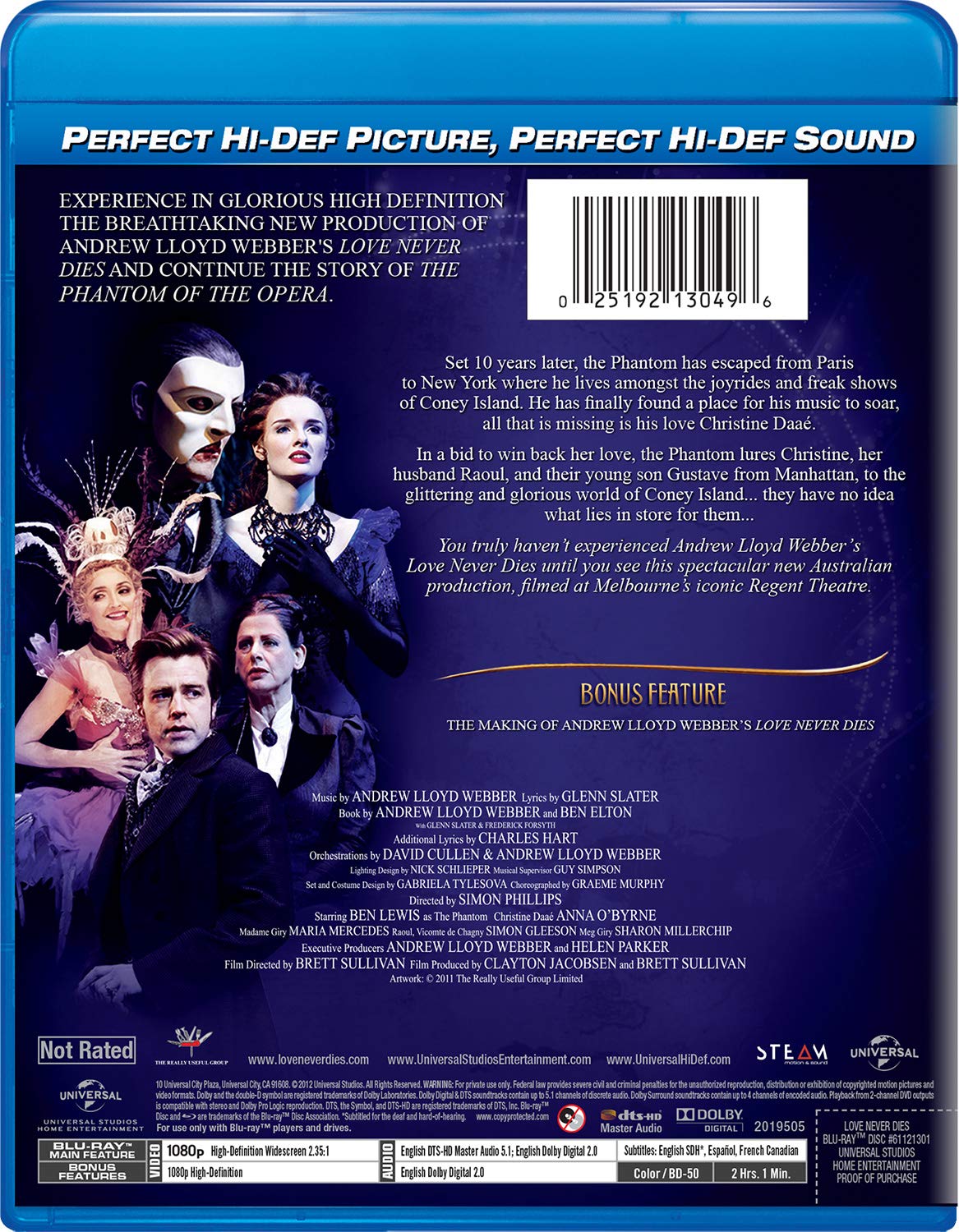 Diez años después, el Fantasma ha escapado de París a Nueva York, donde vive entre las atracciones y los espectáculos de fenómenos de Coney Island. Por fin ha encontrado un lugar para su música, sólo le falta su amor, Christine Daaé. En un intento por recuperar su amor, el Fantasma atrae a Christine, a su marido Raoul y a su pequeño hijo Gustave desde Manhattan hasta el brillante y glorioso mundo de Coney Island… pero no tienen ni idea de lo que les espera… El amor nunca muere, de Andrew Lloyd Webber, no se conoce hasta que no se ve esta nueva y espectacular producción australiana, rodada en el emblemático Regent Theatre de Melbourne.