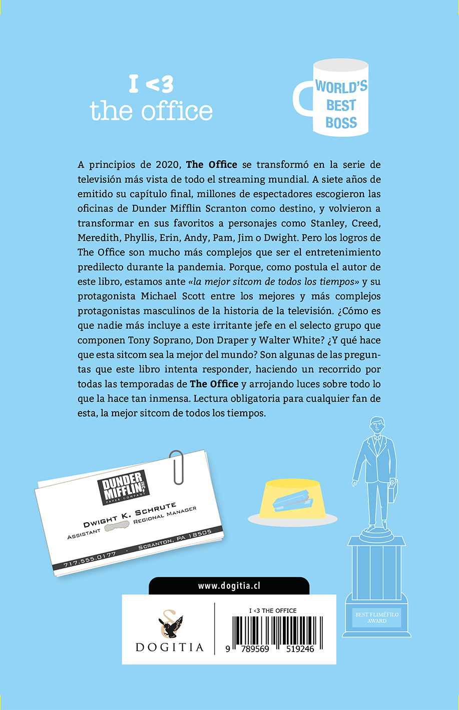 A principios de 2020, The Office se transformó en la serie de televisión mas vista de todo el streaming mundial. A siete años de emitido su capítulo final, millones de espectadores escogieron las oficinas de Dunder Mifflin Scranton como destino, y volvieron a transformar en sus favoritos a personajes como Stanley, Creed, Meredith, Phyllis, Erin, Andy, Pam, Jim o Dwight. Pero los logros de The Office son mucho mas complejos que ser el entretenimiento predilecto durante la pandemia. Porque, como postula el autor de este libro, estamos ante «la mejor sitcom de todos los tiempos» y su protagonista Michael Scott entre los mejores y mas complejos protagonistas masculinos de la historia de la televisión. ¿Cómo es que nadie mas incluye a este irritante jefe en el selecto grupo que componen Tony Soprano, Don Draper y Walter White? ¿Y que hace que esta sitcom sea la mejor del mundo? Son algunas de las preguntas que este libro intenta responder, haciendo un recorrido por todas las temporadas de The Office y arrojando luces sobre todo lo que la hace tan inmensa. Lectura obligatoria para cualquier fan de esta, la mejor sitcom de todos los tiempos.