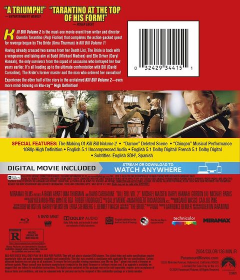 Protagonistas: Uma Thurman, David Carradine, Lucy Liu, Vivica A. Fox, Gordon Liu (AKA Chia Hui Liu), Michael Madsen, Daryl Hannah, Michael Parks, James Parks, Bo Svenson.