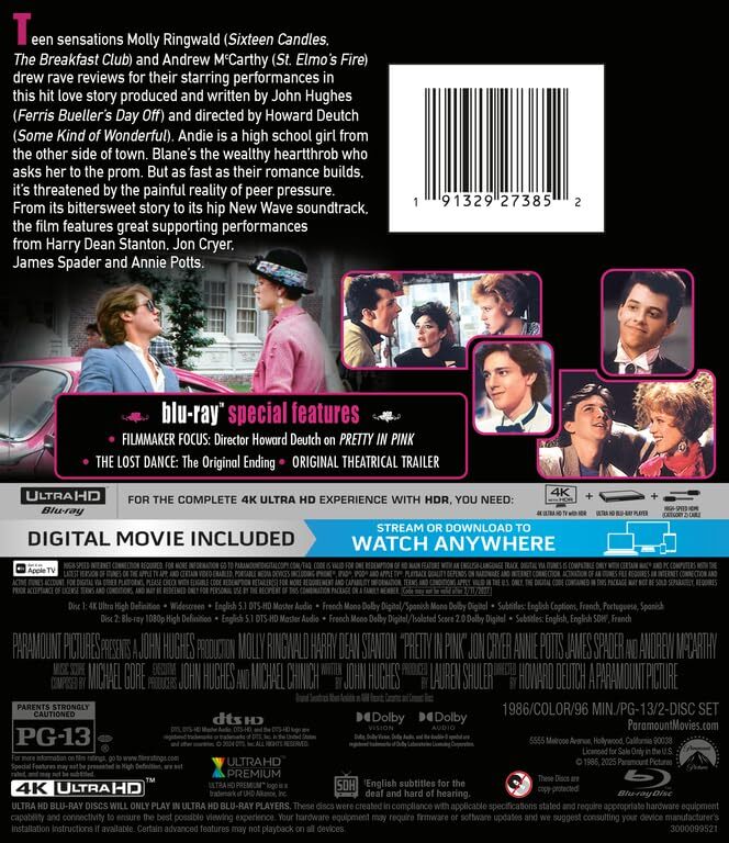 Protagonistas: Molly Ringwald, Harry Dean Stanton, Jon Cryer, Annie Potts, James Spader, Andrew McCarthy.