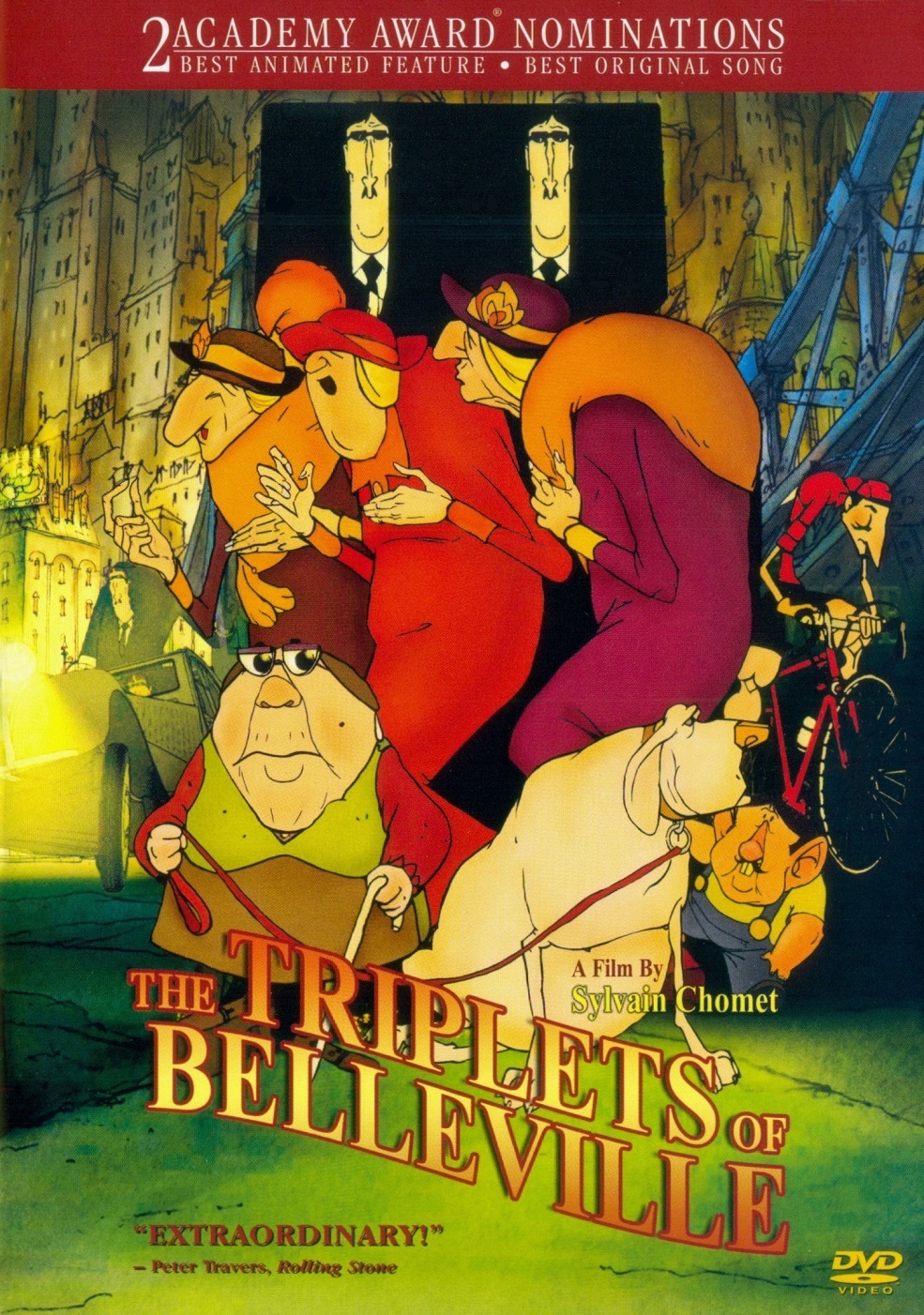 Nunca has visto nada como THE TRIPLETS OF BELLEVILLE, una película animada muy ingeniosa y muy original nominada al Oscar repleta de personajes coloridos e imágenes fantásticas. Secuestrado por misteriosos secuaces de hombros cuadrados, un ciclista del Tour de Francia llamado Champion atraviesa el océano hasta la metrópolis de Belleville. Su abuela y su fiel perro siguen su rastro y son atrapados por un trío de excéntricas divas de la era del jazz. Los detectives multicolores siguen las pistas de una sala de apuestas subterránea y ahora la persecución está en marcha. ¡Ricamente imaginado, tremendamente inventivo y aclamado como una de las mejores películas del año!