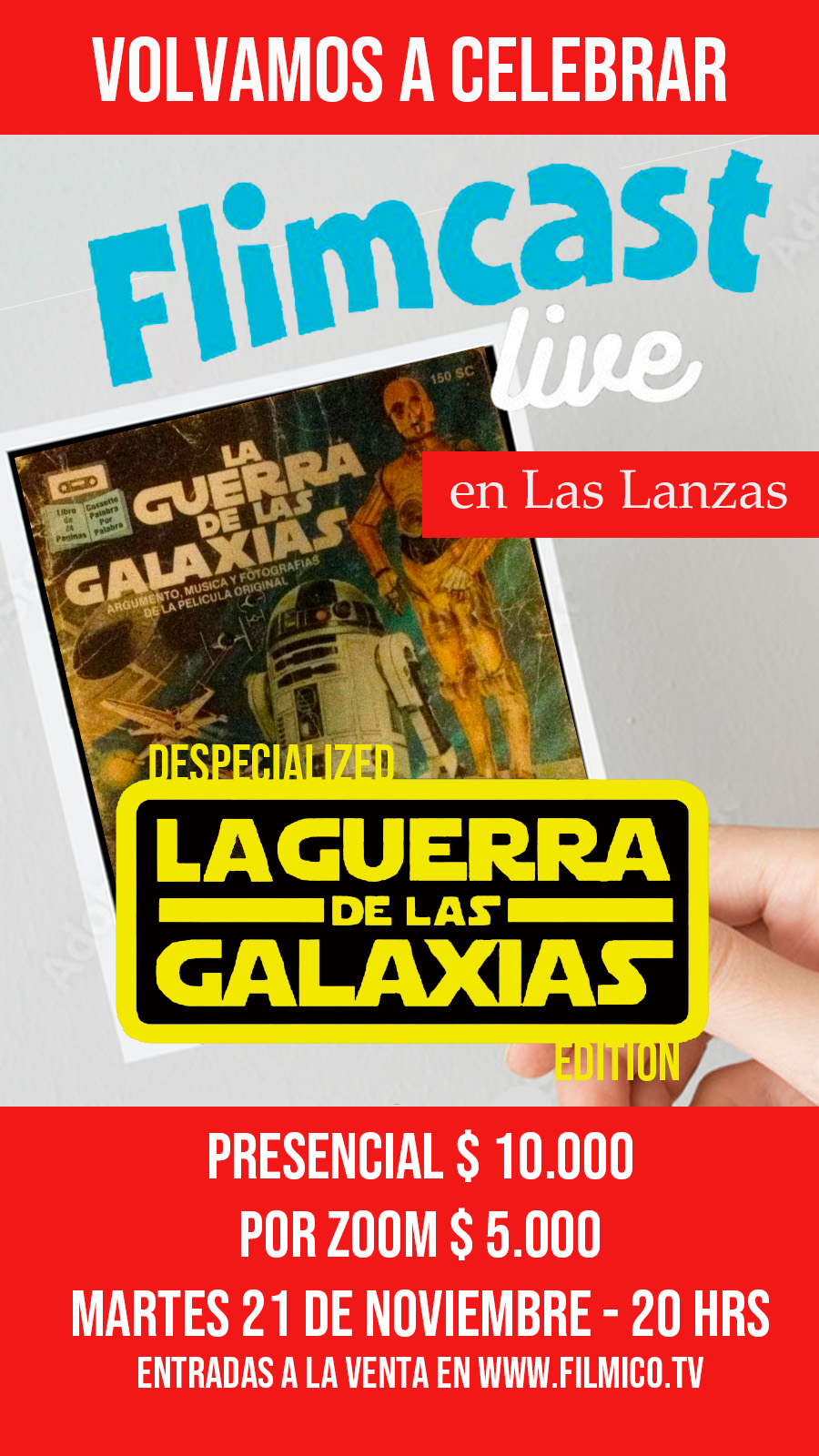 ![[POR ZOOM] Flimcast Live en Las Lanzas presenta TRILOGIA DE LA GUERRA DE LAS GALAXIAS DESPECIALIZED EDITION](https://www.filmico.tv/wp-content/uploads/2023/11/guerra_galaxias_flyer.jpg)